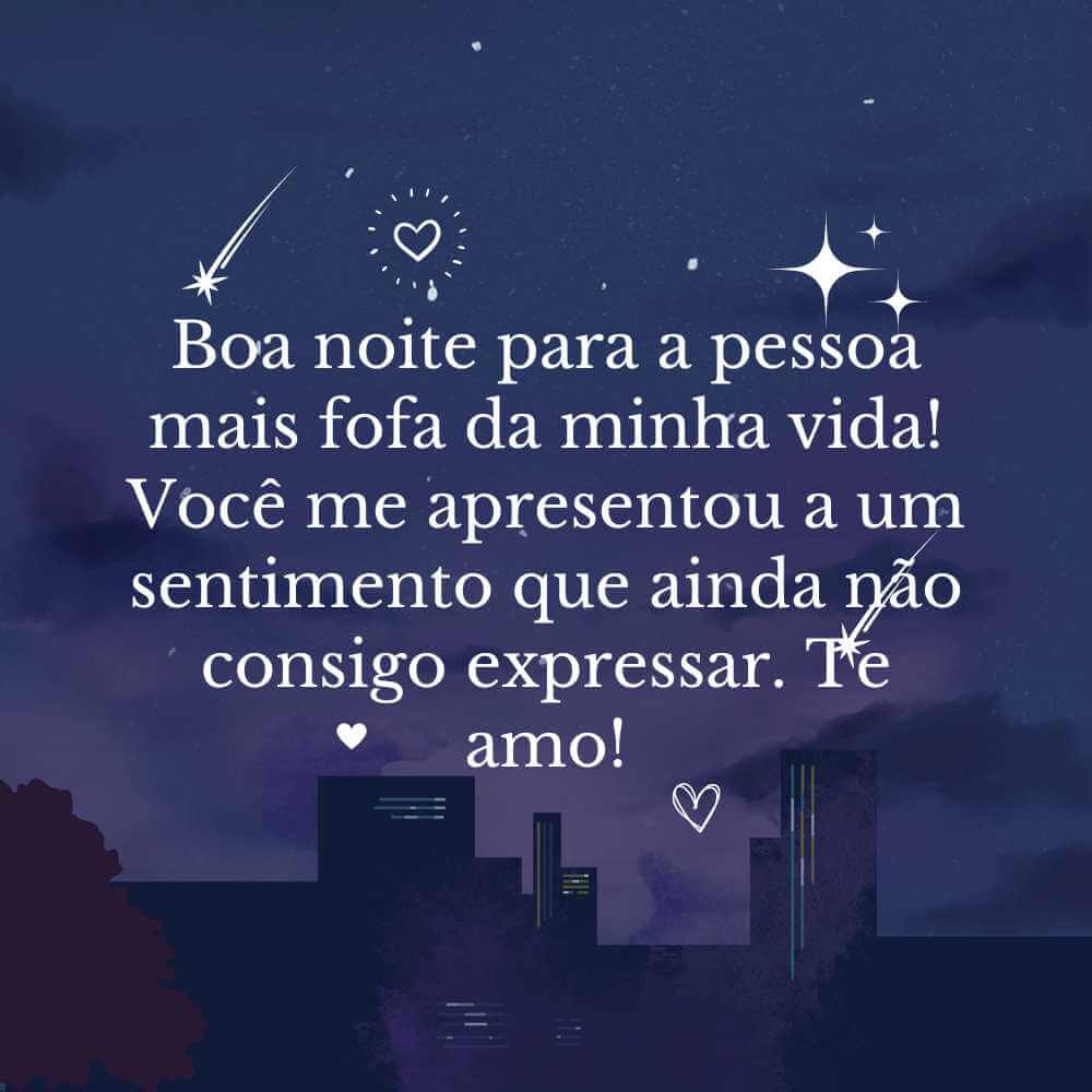 Boa noite para a pessoa mais fofa da minha vida! Você me apresentou a um sentimento que ainda não consigo expressar. Te amo!