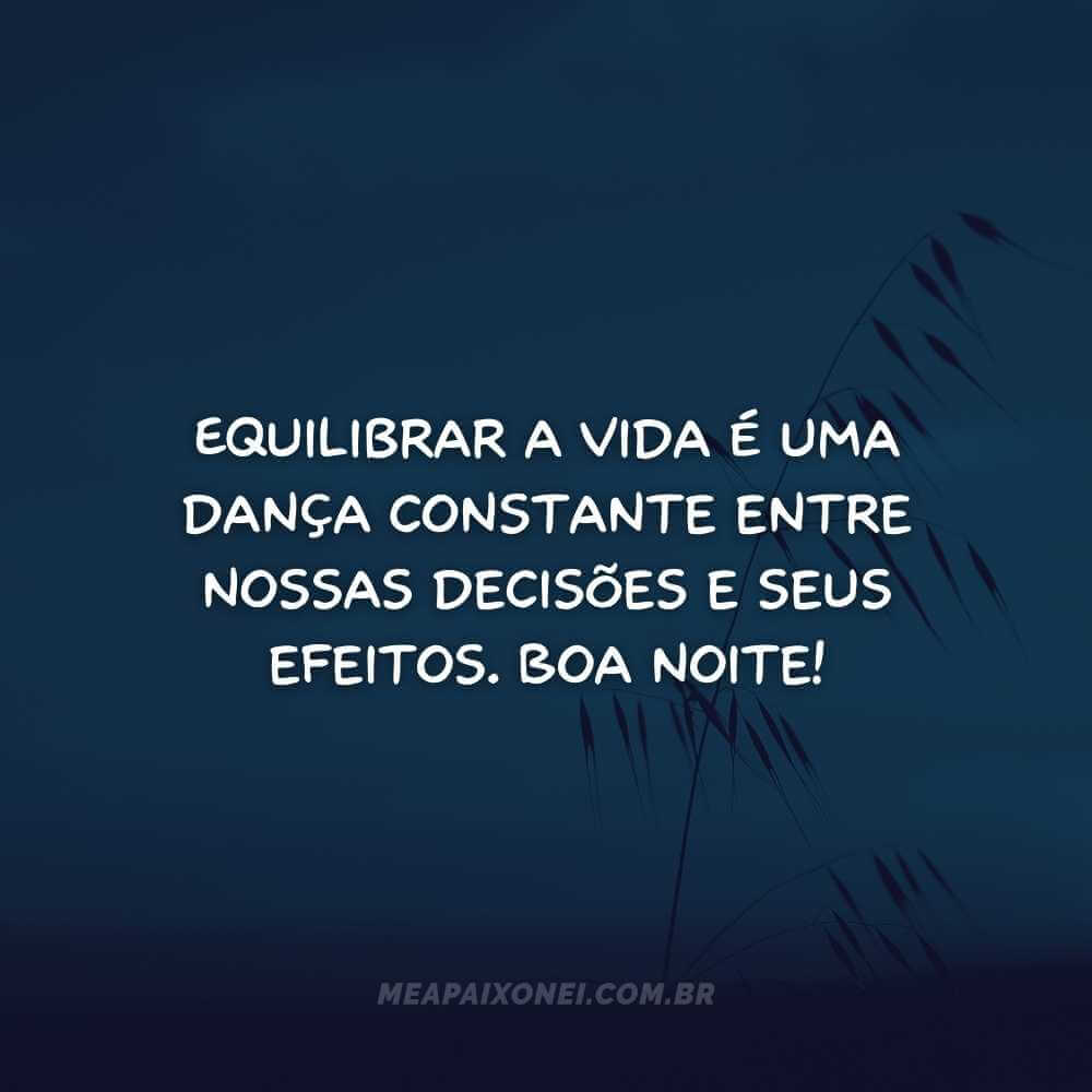 Equilibrar a vida é uma dança constante entre nossas decisões e seus efeitos. Boa noite!