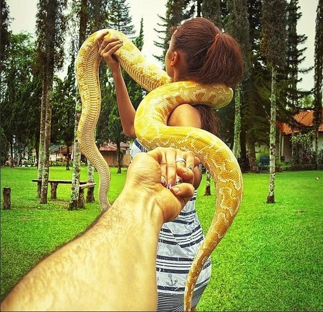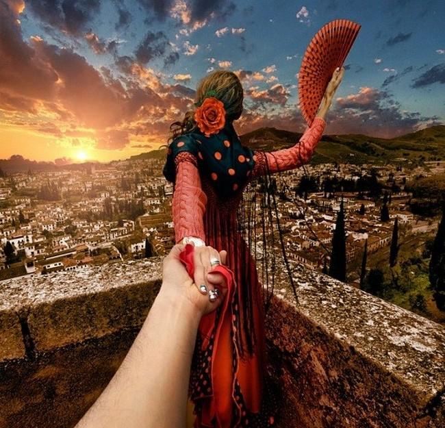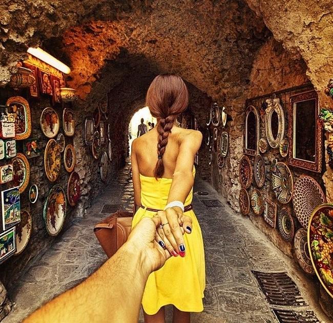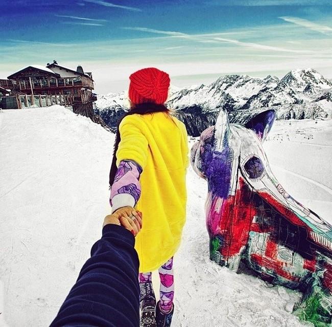 Nomeado de “Follow Me To” (“Siga-me para”, em tradução livre), Murad registra fotos de sua namorada, Nataly Zakharova, o guiando pela mão em todos os países que eles visitaram.